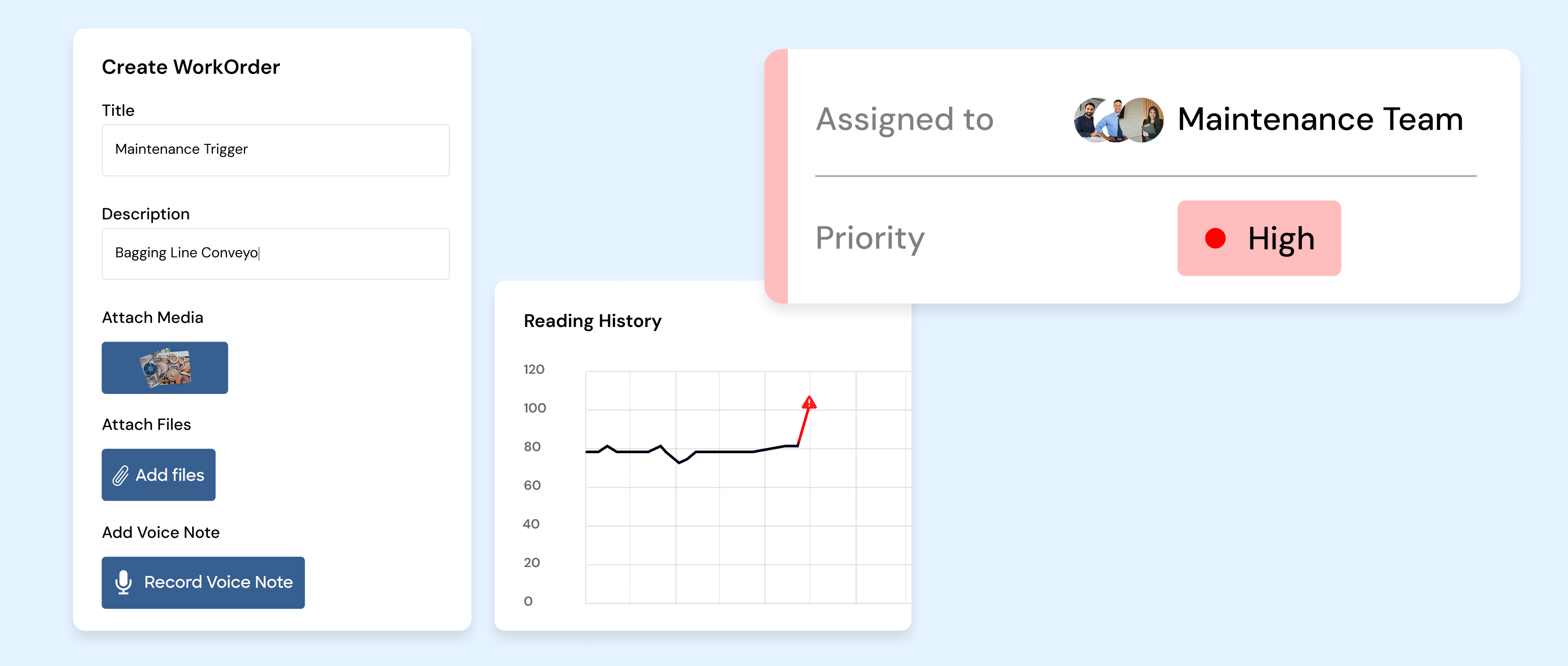 Don't wait for things to break. Set up recurring maintenance plans and condition-based alerts. Opmaint helps you identify issues before they impact your bottom line.